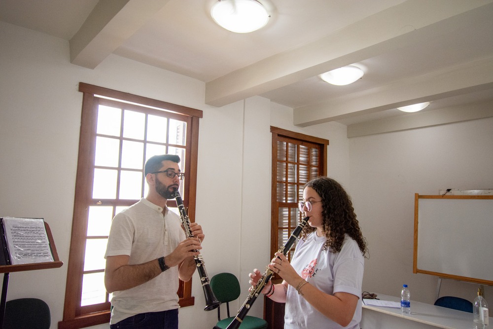 No total, 14 alunos participam do concerto: cinco flautistas e nove clarinetistas.  São estudantes, que transitam em fases diferentes de aprendizado – alguns começaram neste ano na Alma, outros já estão há mais tempo e parte deles estudam na academia desde que a instituição foi criada, há 10 anos.  “Por si só, essa mescla entre os níveis inicial, intermediário e avançado é muito boa porque os alunos podem visualizar onde estão, qual caminho os esperam e onde podem chegar”, arremata Igor Picchi.