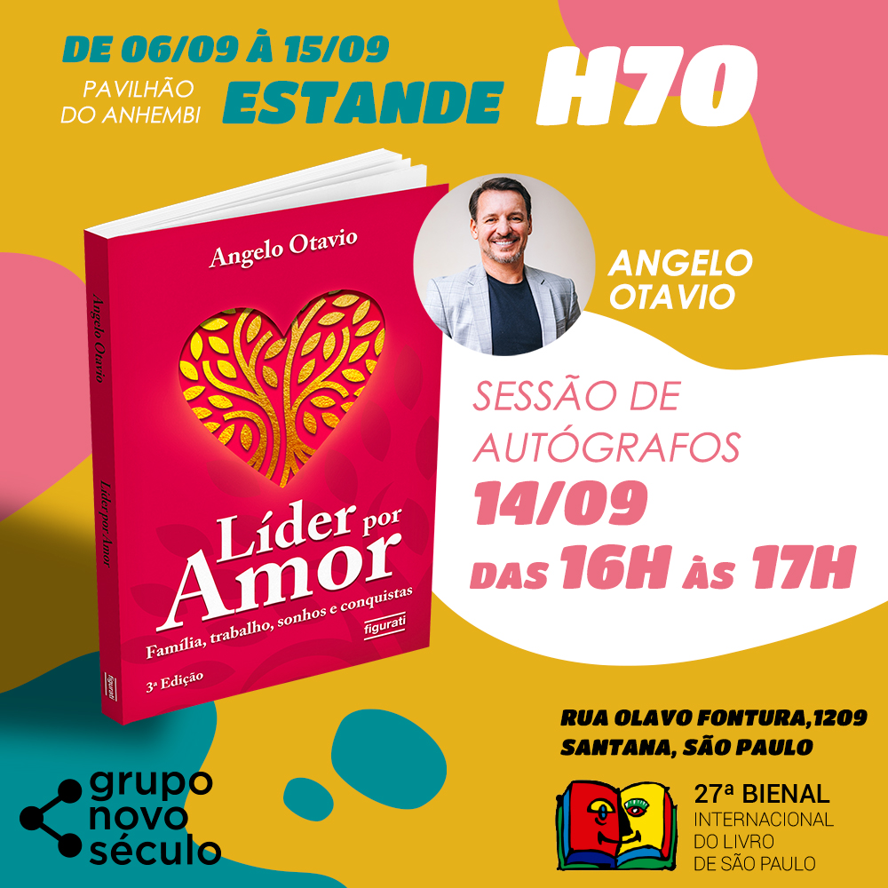 “A Bienal do Livro de São Paulo é um marco para todos nós no mundo literário, e é com grande entusiasmo que participo deste evento ao lado de tantos outros autores talentosos e estou ansioso para encontrar meus leitores e compartilhar um pouco mais sobre a mensagem de ‘Líder por Amo” afirma Ângelo Otavio.