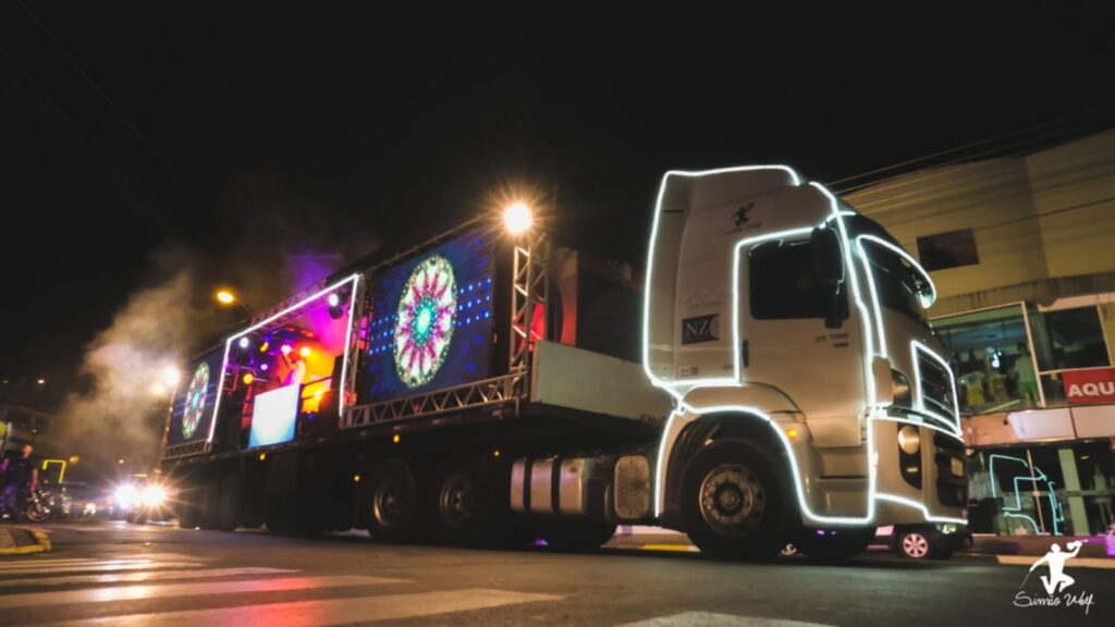 Montada em uma carreta palco móvel totalmente personalizada, a estrutura conta com 30 metros quadrados de painéis de LED, gerador próprio de energia, além de sonorização e iluminação de última geração, garantindo qualidade técnica e uma experiência imersiva ao público. Em Balneário Camboriú, a carreta percorre toda a extensão da Avenida Atlântica, saindo da Barra Sul até a Barra Norte, passando pela Roda Gigante, e retornando pela Avenida Brasil até a altura da Rua 3.700. No dia 28 de dezembro (domingo), se apresentam as bandas Sax’n Roll e Bagpipes. Já no dia 29 (segunda), é o LS Jack quem toma conta das avenidas da cidade, levando seus maiores sucessos ao público.