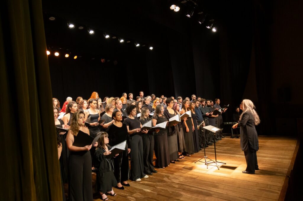 A diretora destaca que o trabalho musical da Cia Minaz com seus corais foi construído ao longo de 2025. “Nós ensaiamos o ano todo, cada período tem seu repertório. O processo é a continuidade de um desenvolvimento anual”, diz.