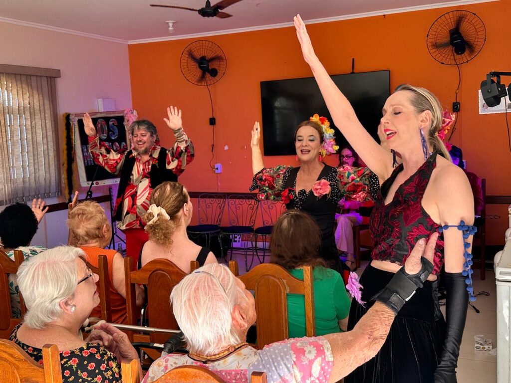 As apresentações acontecem dentro das próprias ILPIs, onde o grupo monta som, iluminação e cenário, sempre adaptados a cada espaço. O objetivo é criar uma atmosfera envolvente, levando a experiência artística a idosos que, muitas vezes, não têm acesso a atividades culturais.