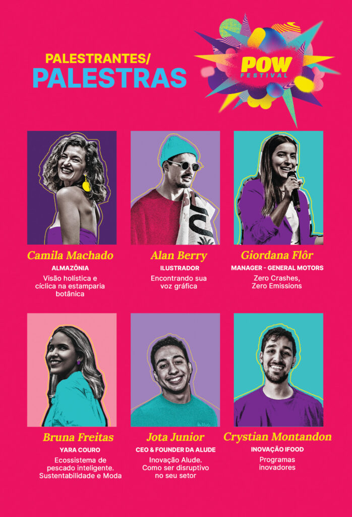 “As palestras serão uma explosão criativa para todos os interessados em como fazer diferente e melhor, romper barreiras de forma criativa e disruptiva não só no âmbito dos negócios, mas também na arte, design, moda e sustentabilidade”, conta Allan Szacher, curador do POW Festival.