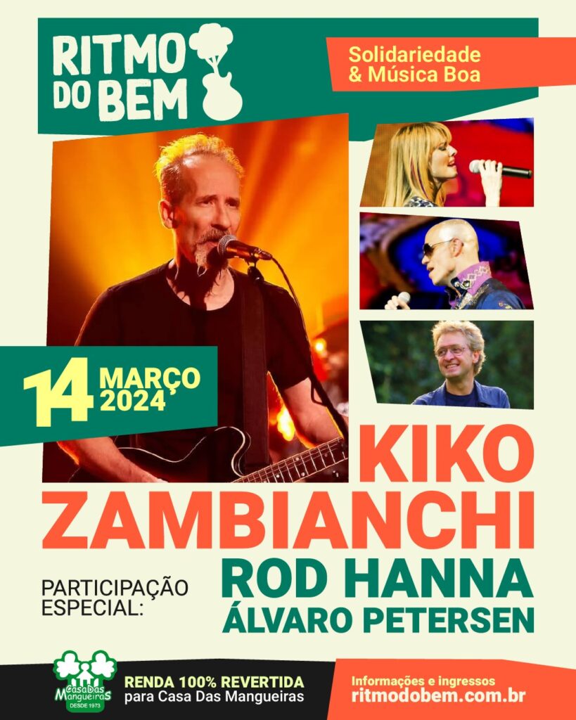 Solidariedade e música boa! O projeto “Ritmo do Bem” realizará uma noite de show em benefício da Casa das Mangueiras, com o cantor Kiko Zambianchi e a participação de convidados especiais como a banda Hod Hanna e o músico Álvaro Petersen. O evento acontece no dia 14 de março, às 20 horas, no Espaço Bella Città, em Ribeirão Preto.