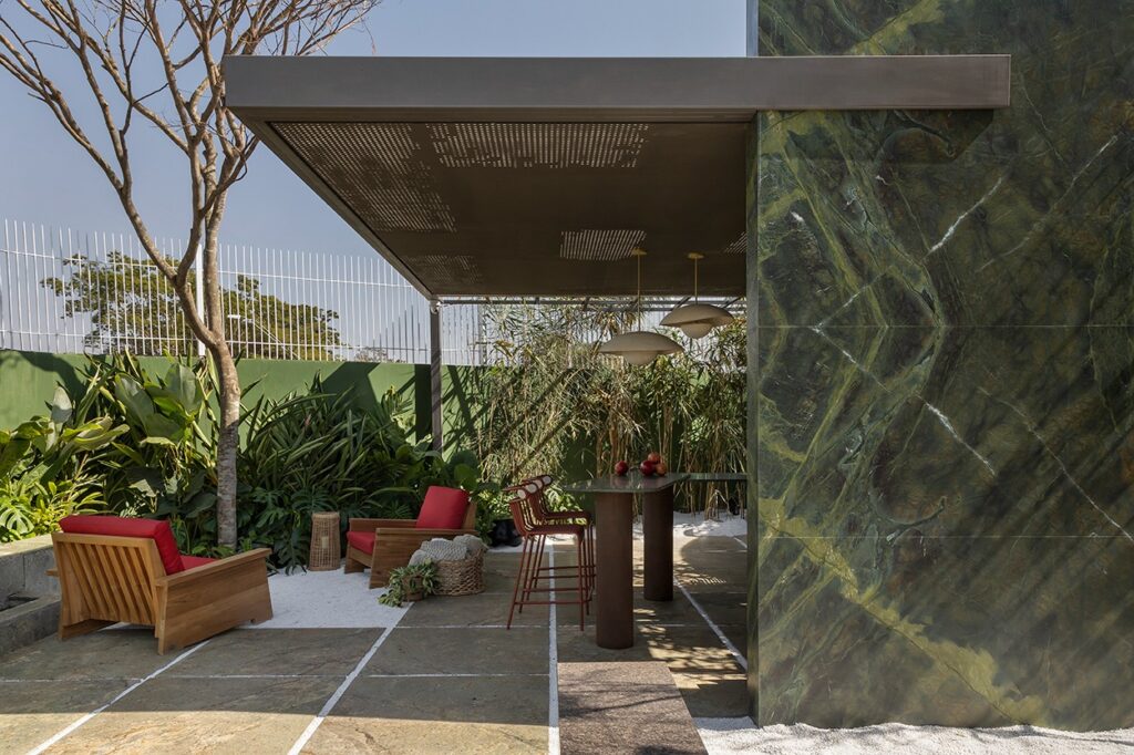Espaço “Entre encontros por Necta”, de Rafael Granero, conta com um jardim elaborado pela paisagista Mônica Costa – Foto: Carolina Mossin