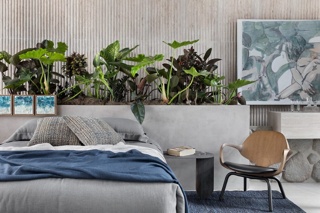 O que chama a atenção na mostra este ano é o destaque que esses elementos da natureza ganharam nos ambientes internos. O Equilíbrio Deca, de Bruno Ortega, é um exemplo. Com uma área de 47m², o loft é um verdadeiro refúgio, com plantas na cabeceira da cama, na estante da cozinha e até no banheiro. “Hoje, vivemos em ambientes cada vez mais artificiais. Sem dúvida, a integração com os elementos naturais é essencial para alcançarmos um equilíbrio e uma atmosfera mais aconchegante”, explica o arquiteto.