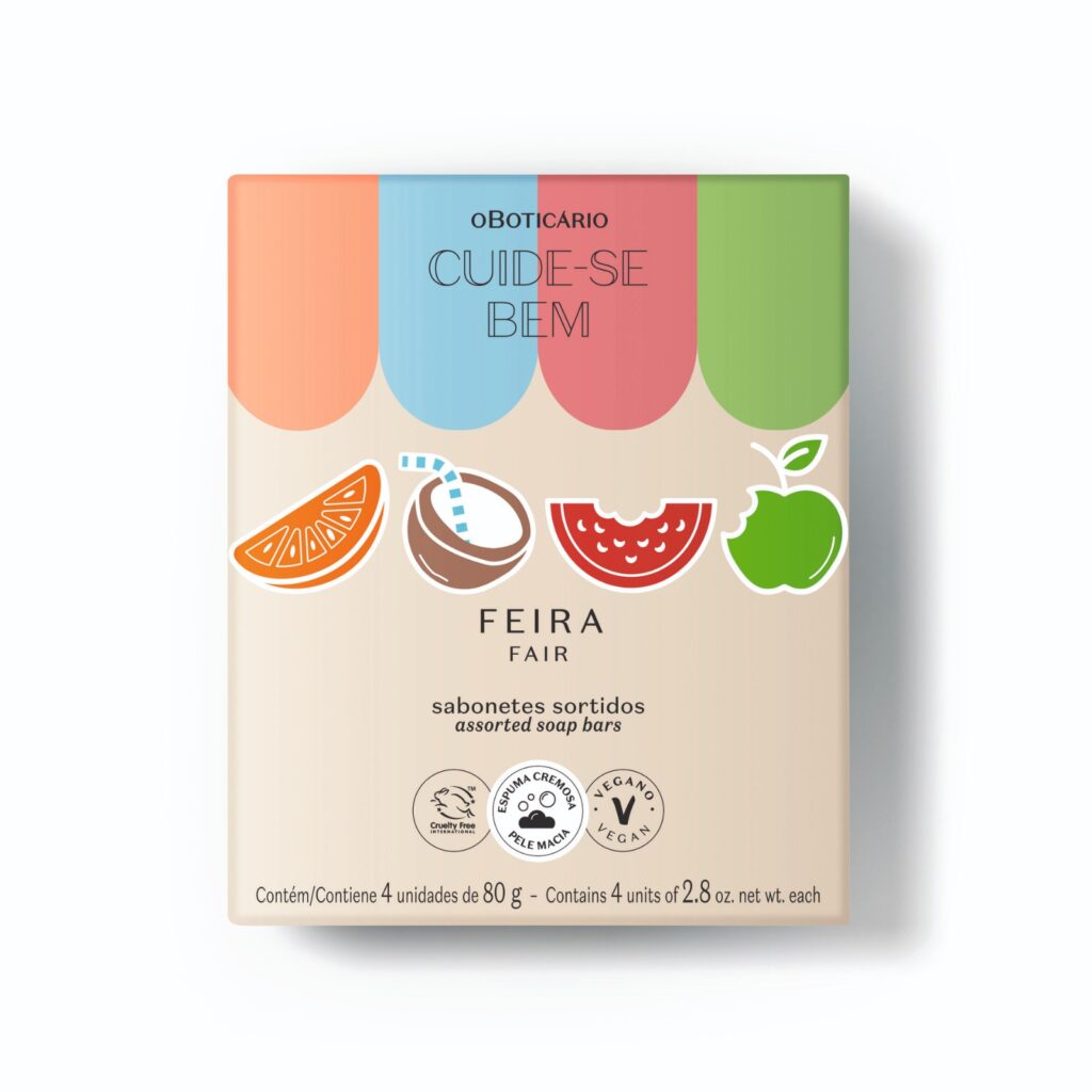 Os Sabonetes em Barra Sortidos Cuide-se Bem Feira vão deixar sua pele super macia e com um delicioso cheirinho de frutas pós-banho. Trazendo uma salada de frutas* com melancia, tangerina, coco e maçã verde para o seu banho, estes sabonetes não só higienizam, mas também proporcionam: