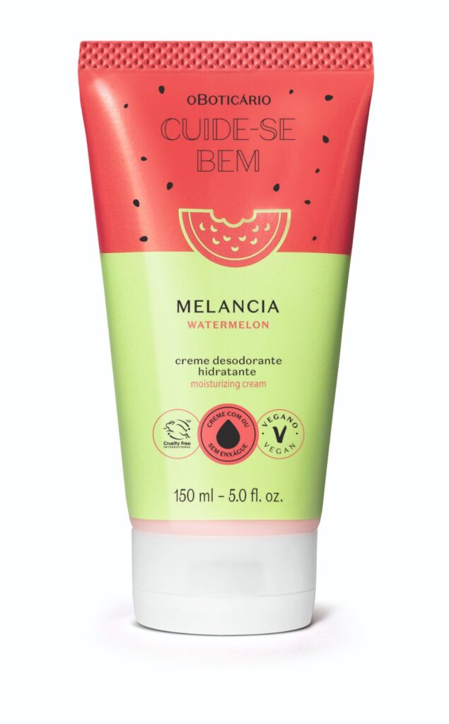 A perfumação, que combina as notas florais aquáticas da melancia, transporta os ‘melanciers’, nome dado aos lovers da marca que são fãs declarados da fruta, para uma cachoeira de sensações: saída frutal aquosa de melancia, coração aromático e floral, e um fundo amadeirado com Praliné. “Após o sucesso de Egeo Melancia, que foi lançado a partir de pedidos da nossa comunidade, entendemos que essa fruta queridinha tinha ainda mais potencial para ser explorado e Cuide-se Bem era a marca ideal para realizar isso. Nossa aposta em um portfólio completo com cheirinho da fruta vem para somar à volta de Egeo Melancia ao portfólio e oferecer uma experiência ainda mais completa aos nossos consumidores, com novos produtos que transmitem o sensorial suculento e refrescante da melancia, com diferentes texturas e sensações no momento de autocuidado.”, comenta Bruna Nunes, diretora da categoria Corpo & Banho do Grupo Boticário.