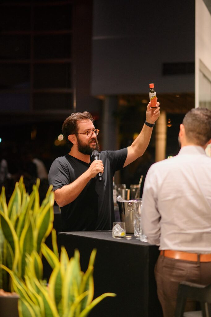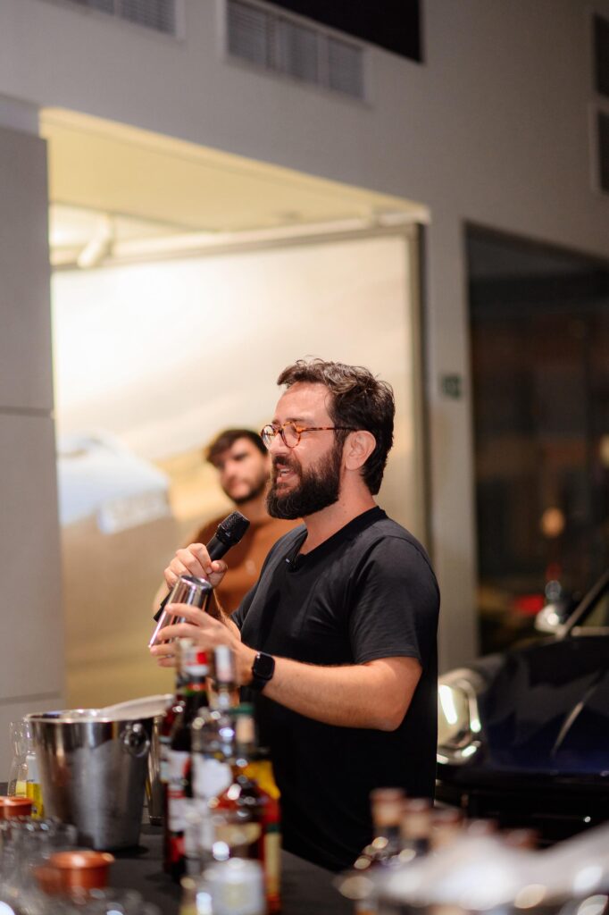 O mixologista e proprietário do Zimbro Cocktails & Co., Benício Calaça, foi o nome escolhido pela Porsche para conduzir uma masterclass exclusiva de coquetelaria voltada aos seus clientes e convidados em Goiânia. O evento reuniu 30 participantes, entre membros do clube Porsche, proprietários de veículos da marca e potenciais compradores.