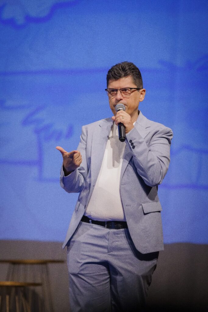 O autor, cartunista, diretor de espetáculos teatrais, palestrante e encantador de crianças, Christie Queiroz, o criador da Turma do Cabeça Oca, recebeu professores, arte-educadores e psicopedagogos na IV Jornada de Educação, Arte e Cultura da Turma do Cabeça Oca – OcaVolts 2025, realizada no último sábado (4), no Teatro Madre Esperança Garrido. Os participantes prestigiaram palestras dos artistas e educadores Raquel Alves e Nélio Velho e também do realizador do evento.